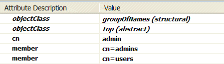 admingroup user group with the roles, SuperUser and Administrator, you could create an entry like the following:
