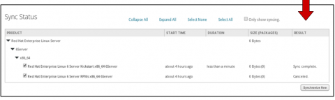 The repositories that were enabled in the previous step, will show up as item ready to be synchronized.