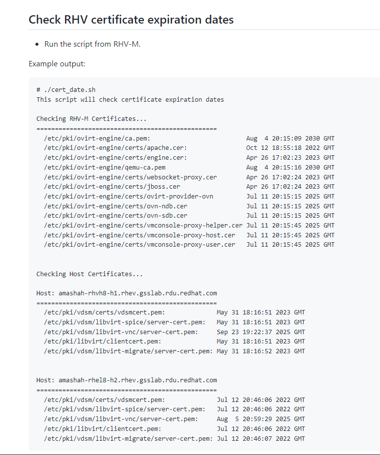 cert_date.sh. - Copy it to a convenient directory on your RHV-M system.